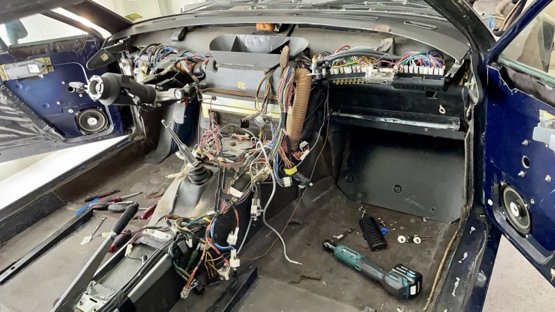 La première étape est de tout démonter l'intérieur. Nous allons sous traiter la réfection des cuirs du tableau de bord par Sellerie Cime. Si vous avez besoin d'un bon sellier, il ne faut pas hésiter!