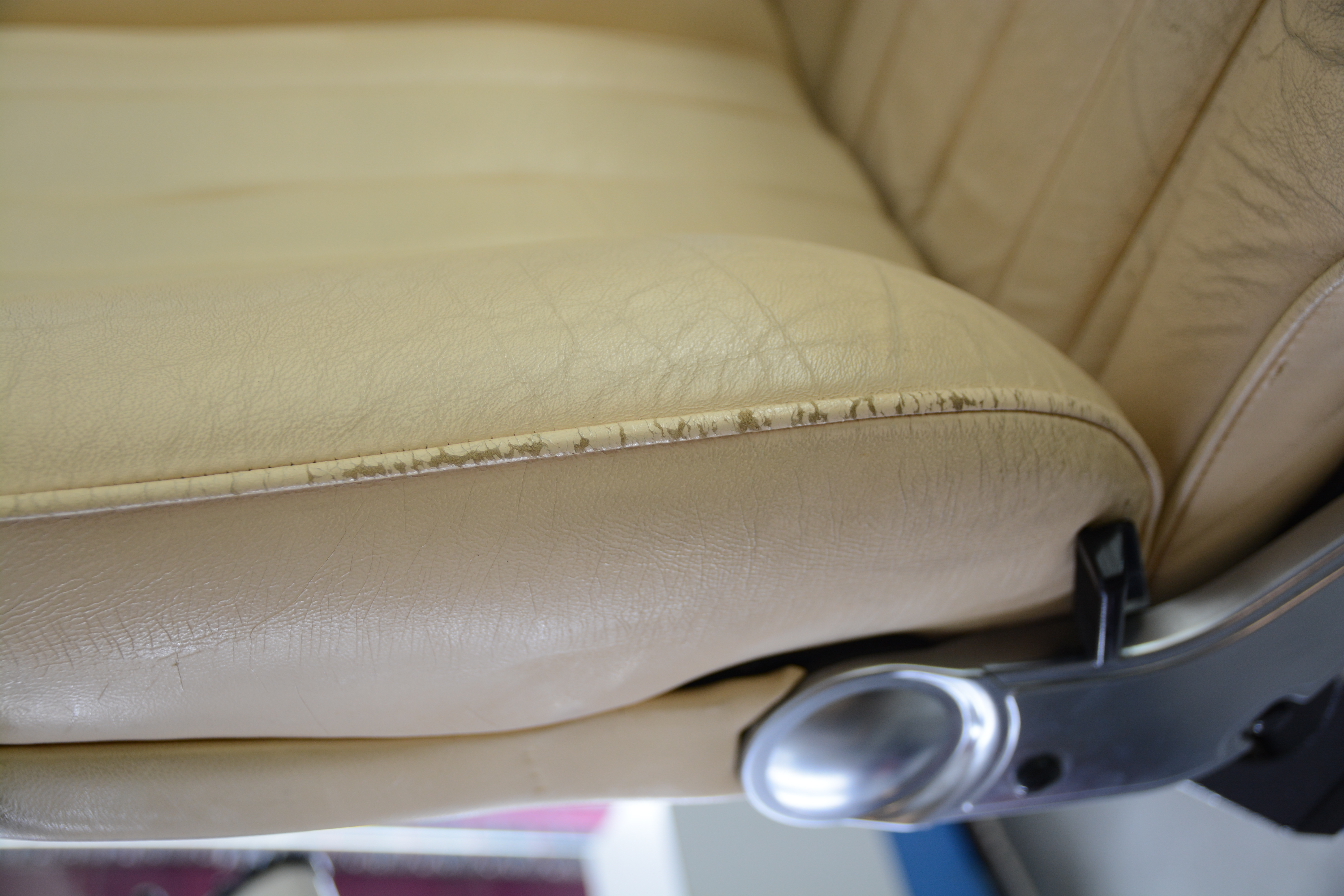 Nous allons nous attaquer à la réfection des cuirs. Nous allons leur redonner l'aspect du neuf mais pas trop pour pas que cela ne dénature par rapport à l'âge de la voiture.