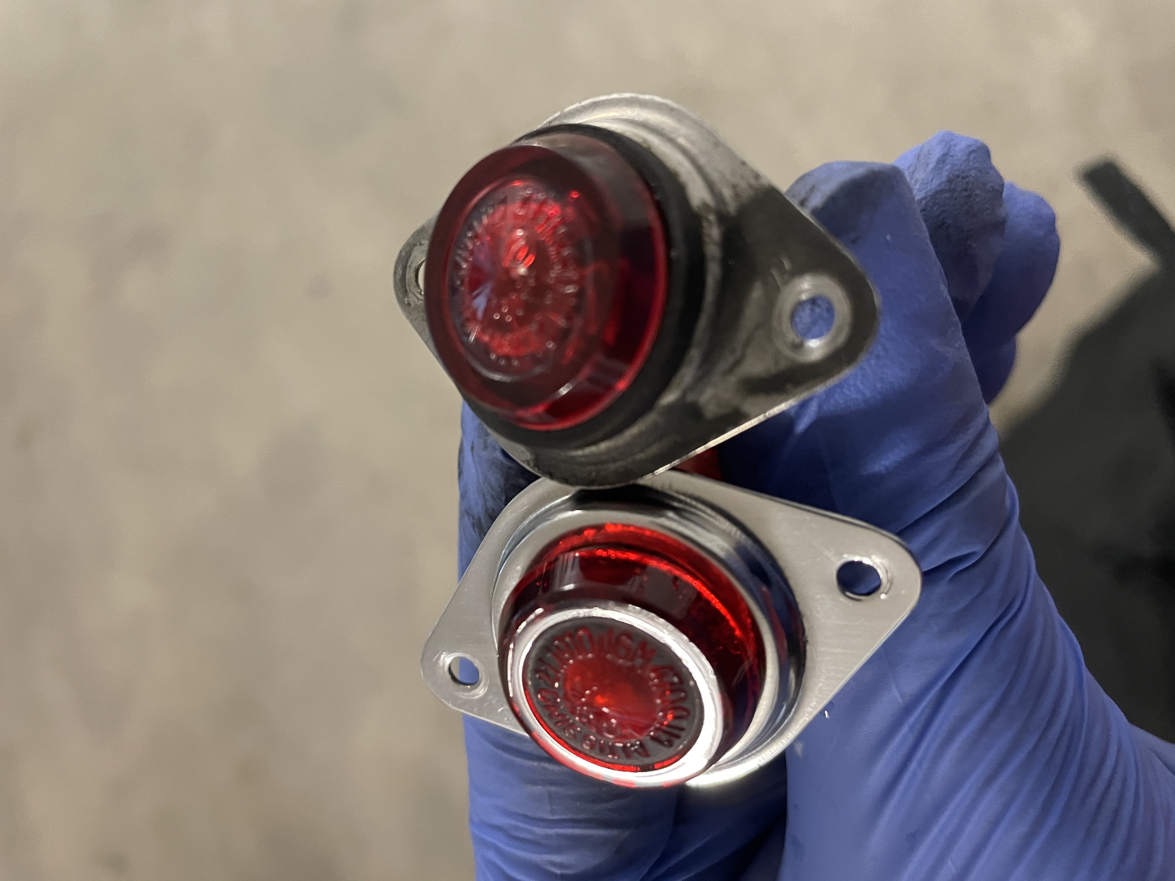 Dernière étape dans notre restauration est la partie des phares arrières. Nous avons pu retrouver des phares d'origine. Mais avant de faire un échange standard il faut redresser la taule, enlever tout le mastique, refaire le câblage électrique, nettoyage des ampoules.