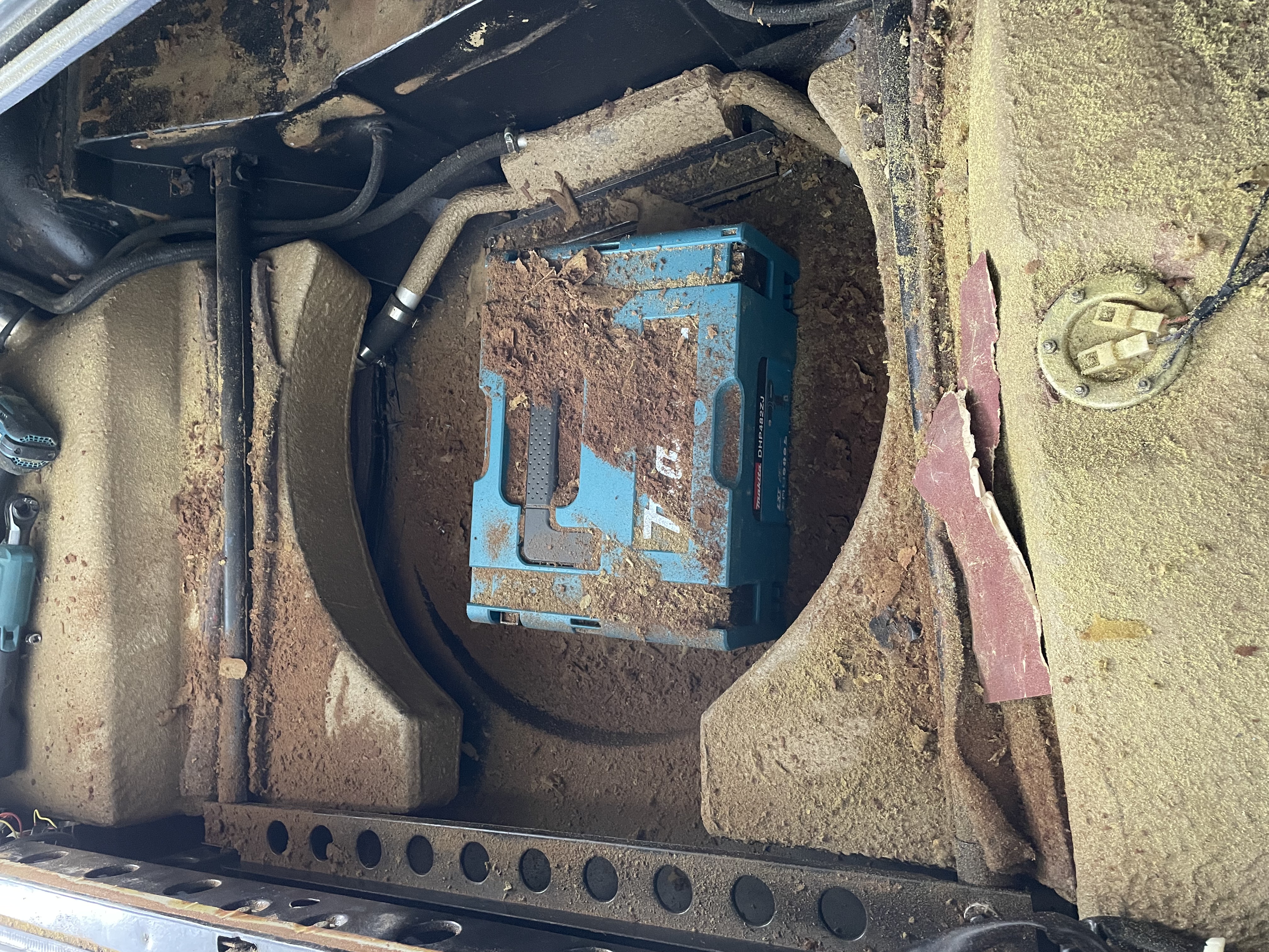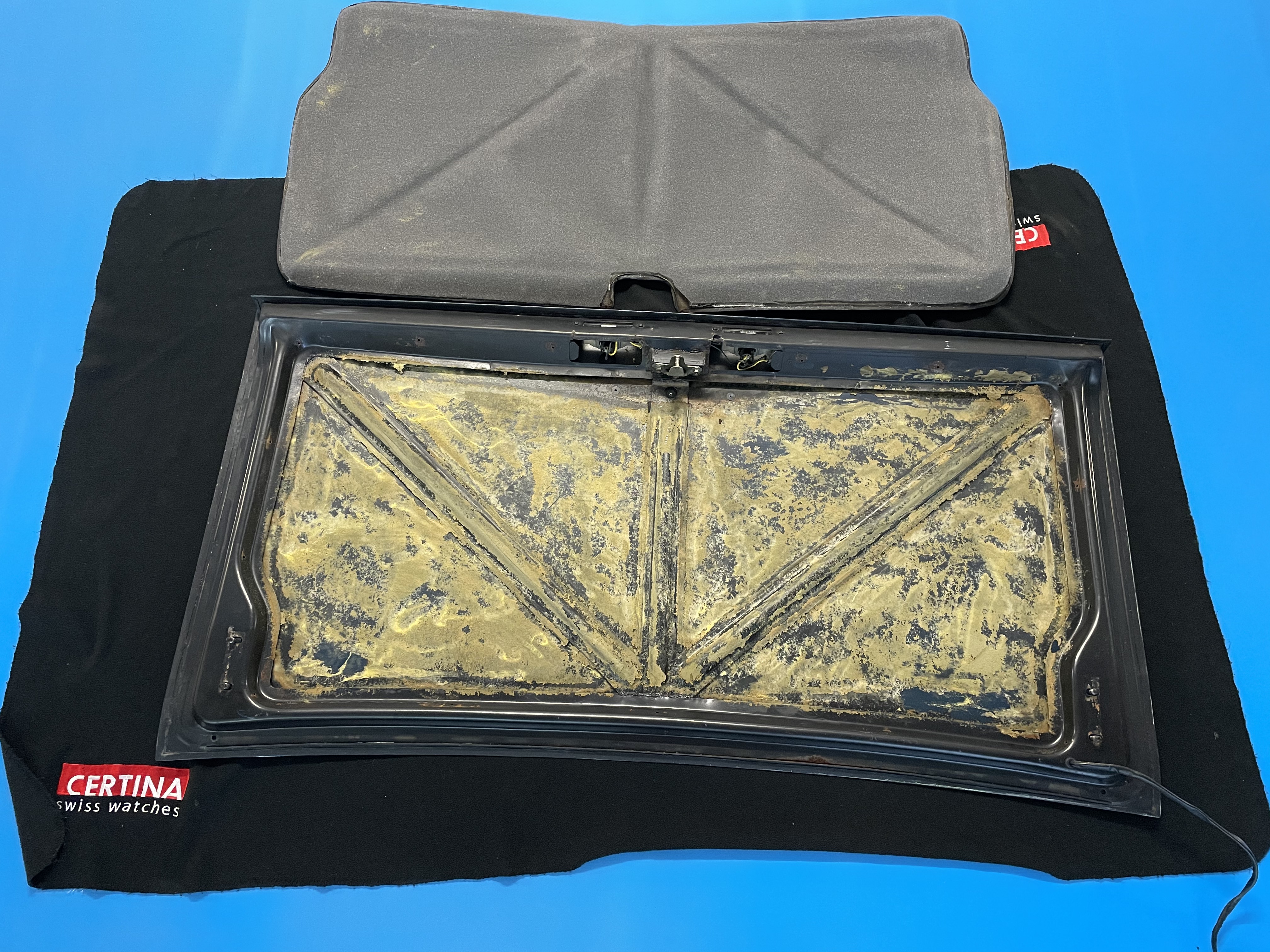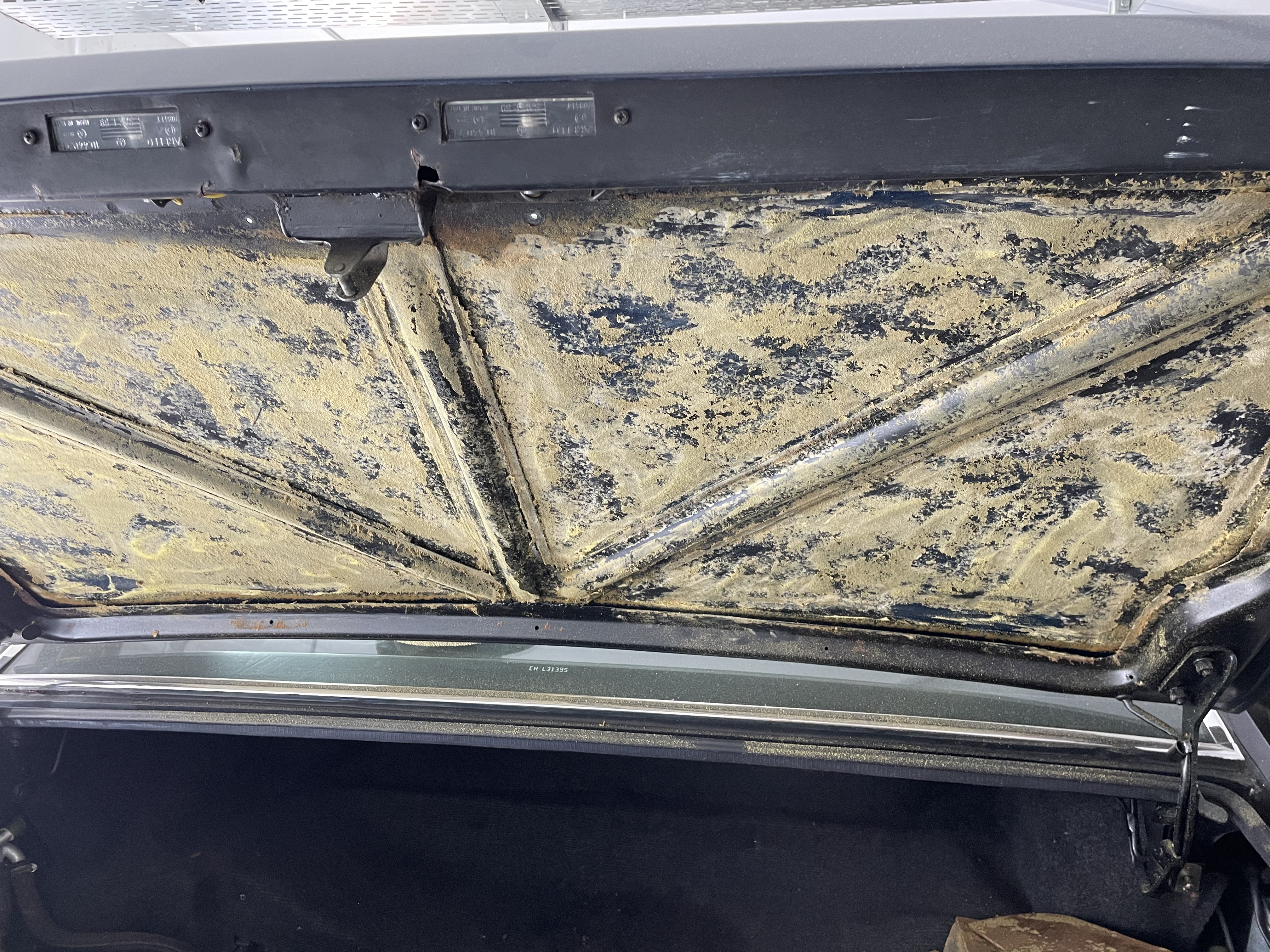 Le coffre a aussi besoin de soin. Les moquettes en surface sont en excellente état. Par contre la mousse elle se désagrège. Tout comme la menuiserie de l'intérieur du coffre.